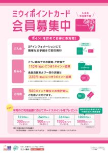 - ※2枚以上のミウィポイントカードをお持ちの場合でも、ポイント合算できません。