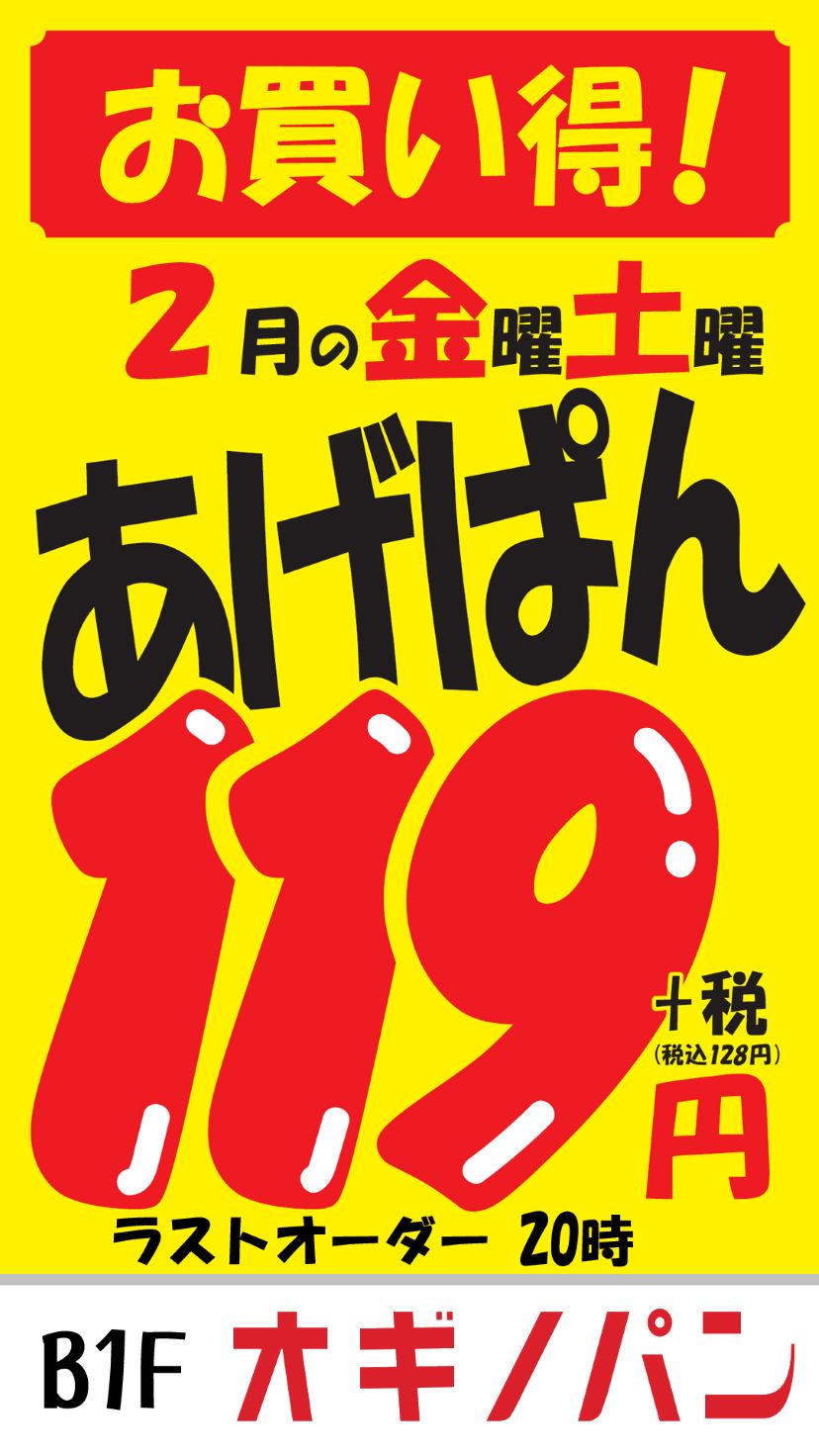 2月の金曜・土曜 あげぱん特売のご案内