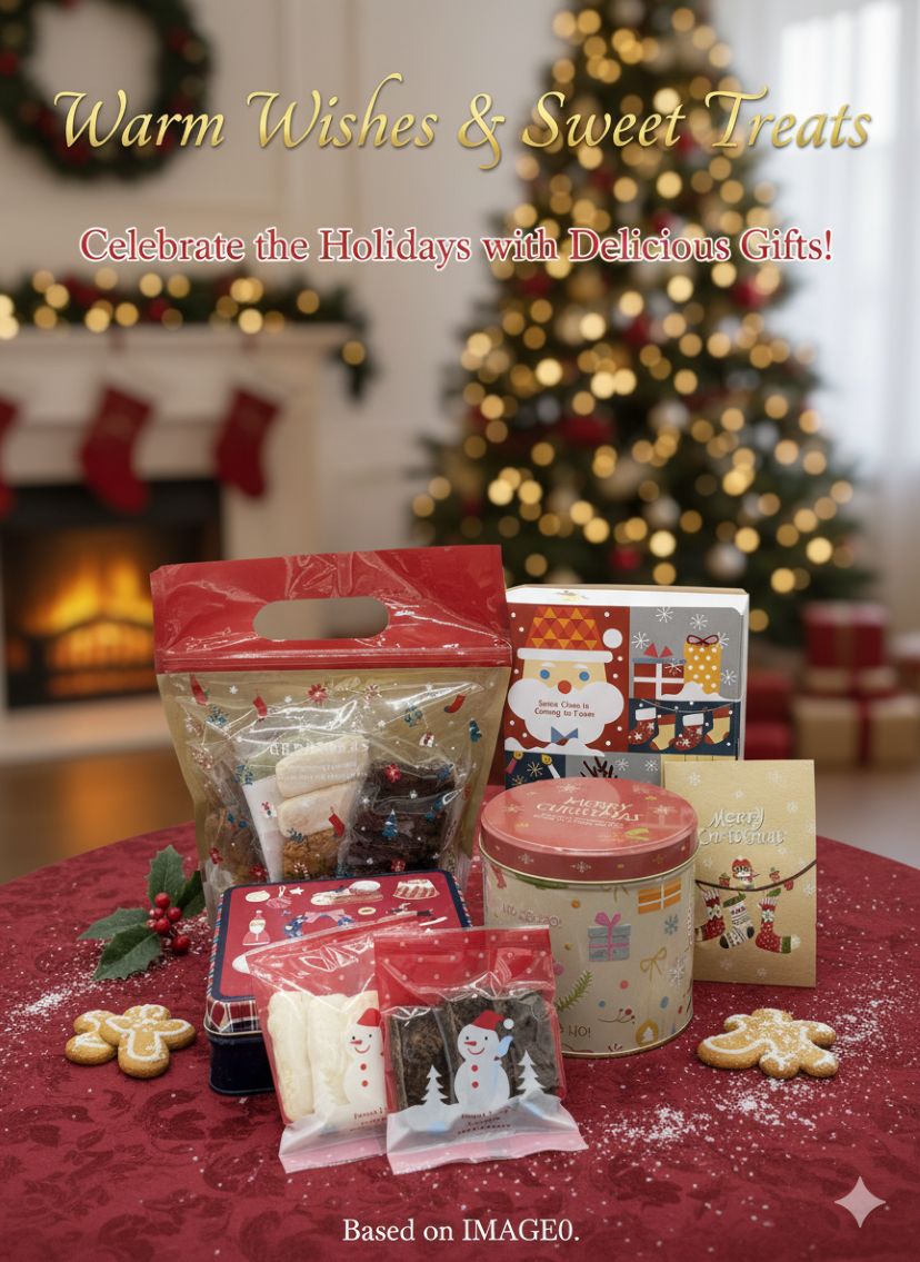 可愛いクリスマスパッケージにせんべいを詰合せました。