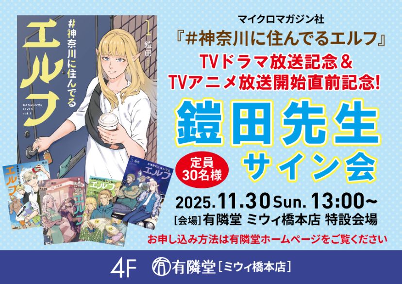 11/30(日) 「#神奈川に住んでるエルフ」アニメ化放送記念 鎧田先生サイン会
